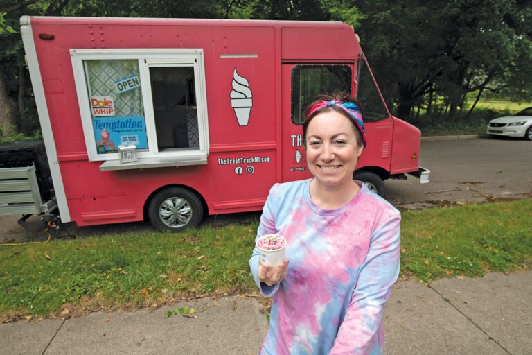 Nurse practitioner pilots Treat Truck as “side hustle”: Katherine McKowell began the business after falling in love with Dole Whip, the plant-based, dairy-free soft-serve frozen treat, on a South Carolina vacation last year, writes Sandor Slomovits for this month’s Observer. Until recently, it was only available at Disney parks and the Dole plantation, but now McKowell is dishing it out from a pink 1997 Chevy P30 step van she bought on ebay for $20,000. With staffing help from her family and friends, TheTreatTruckMI is popping up around town a few times a month. Her calendar is on the site.