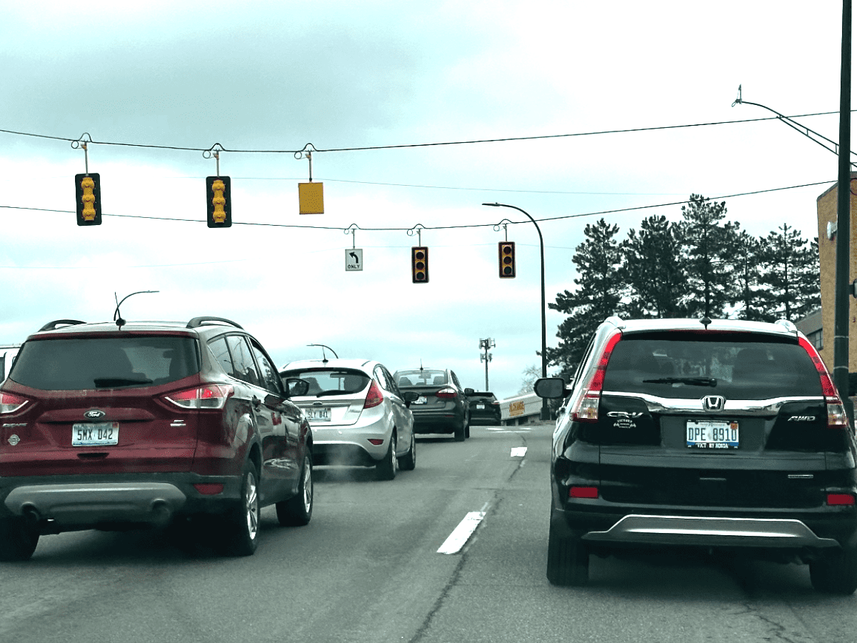 As late as Tuesday afternoon, this intersection at Prospect Ave. and E. Michigan Ave. in Ypsilanti was still without power following last week’s ice storm. Credit: Steve Friess.