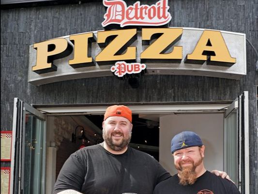 Nick Habbert and Justin Smith nurtured the idea of a sports bar featuring Detroit-style pizza for nearly a decade, refining longtime family recipes in the process of opening Detroit Pizza Pub. Credit: J. Adrian Wylie.