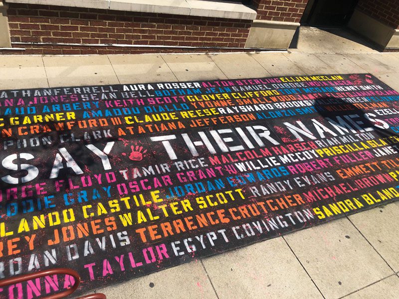 With permission from the city and support from local business owners, BLM activist group Paint the City is producing a series of public murals across Ann Arbor. The first was completed on June 30, across from Tios Mexican Cafe and Tequila Bar on Liberty St. Photo by Trilby MacDonald.