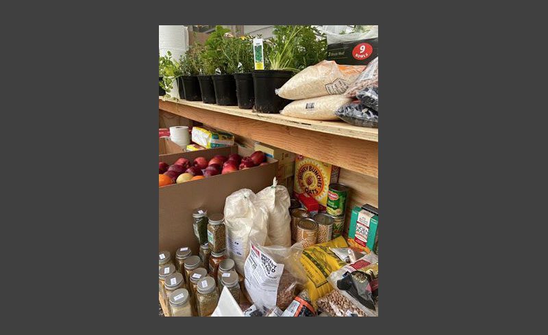 Graham works to keep the pantry stocked with non perishable food and household essentials, including canned fruits, veggies, pasta, baby diapers, even toilet paper and potted plants. Photo by D’Real Graham