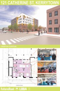 A controversial issue that arose with the Catherine lot was focused on parking—the current lot there has forty-nine spaces, four reserved for electric vehicles and forty-five available to other customers at nearby businesses and the farmers market. The site plan includes eighteen public parking spaces, still with four reserved for electric vehicles, leaving just fourteen for residents and customers at area businesses. The housing commission will purchase two EVs for resident use. “Less parking equals more affordable housing units,” Disch says.