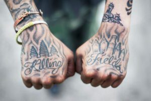 Shorty, 28, shows his Killing Fields tattoo, Philadelphia, PA. Photo by Pete Pin, part of the “Angkor Complex: Cultural Heritage and Post-Genocide Memory in Cambodia” exhibit at UMMA running through July 28.