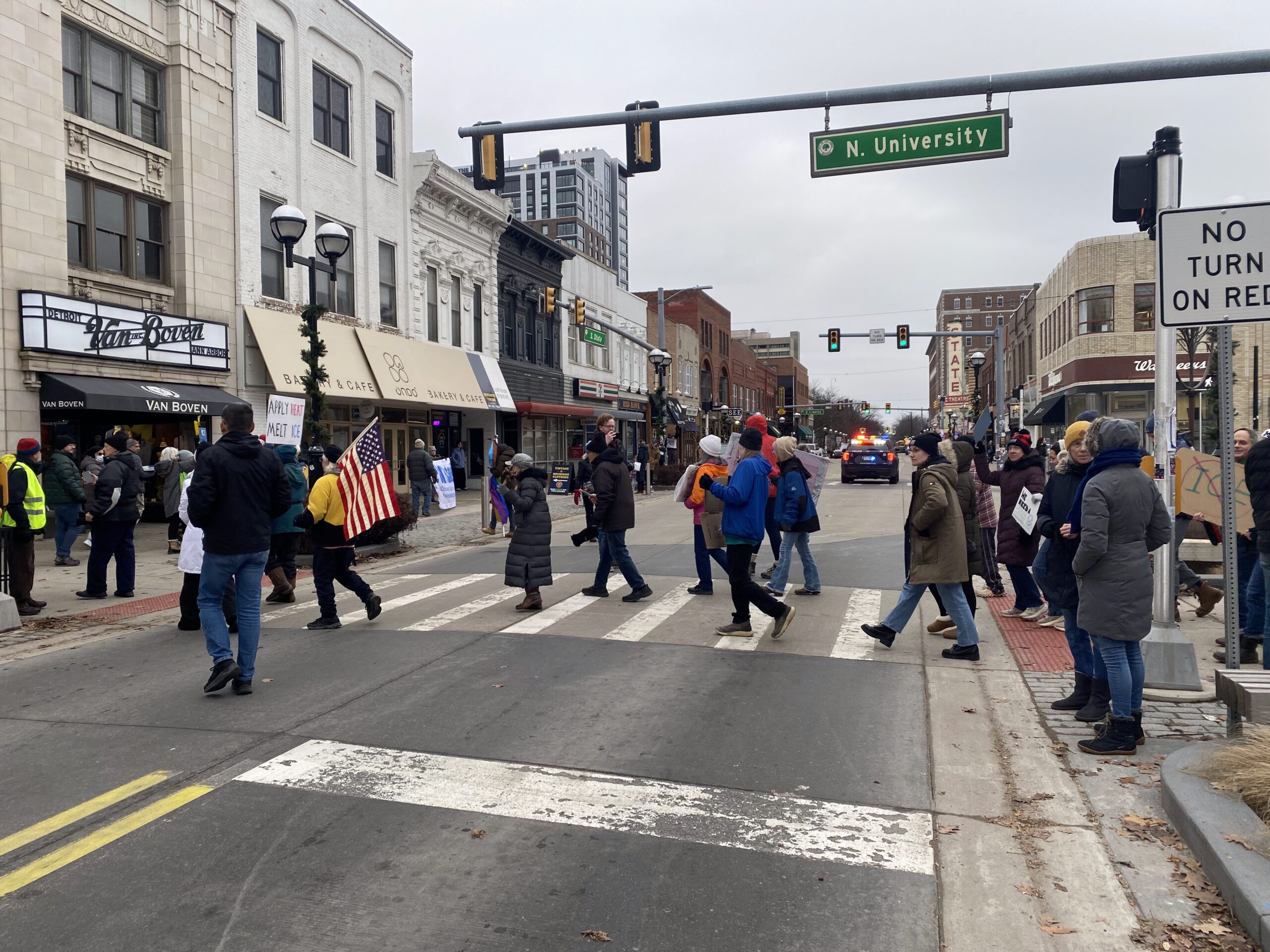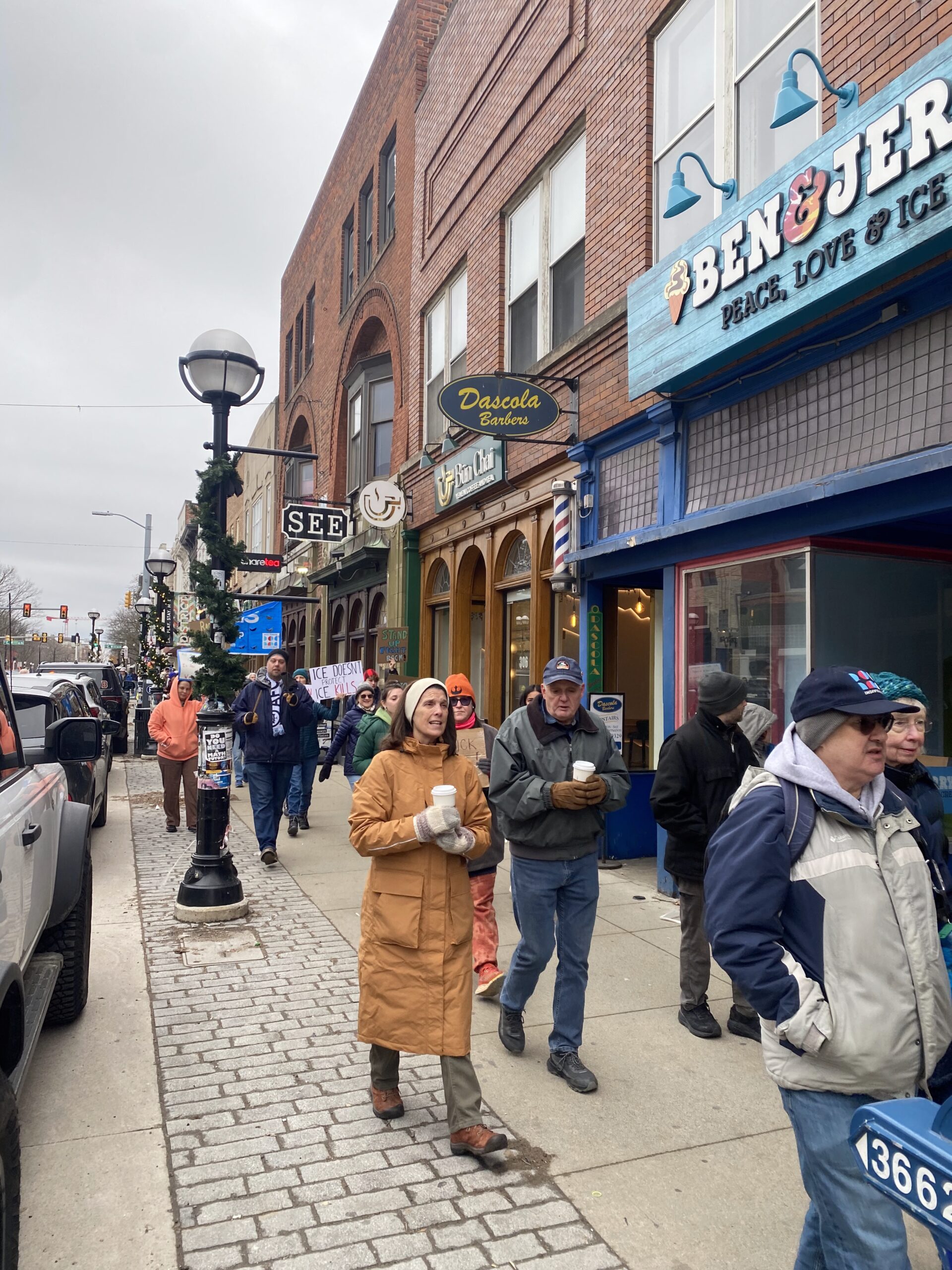 For the sake of editorial objectivity, I won’t talk about my opinions about the issue of ICE, but what I will say is that it was an exciting energy, the sight of these hundreds of people, all different ages, who left the coziness of home to go march and chant in the streets because of something they believe in. I’ve had the opportunity to observe a lot of the different scenes in Ann Arbor — arts, nonprofits, restaurants, business, government, education — but this was my first time seeing the progressive political side of the city, which makes up so much of its history and identity.