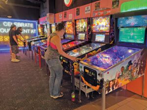 Pinball Pete’s was doing a brisk bit of business on a warm, sunny Sunday evening, having seemingly made a full recovery from its pandemic closures. I had expected Pete’s to be significantly dingier than the hazy, neon-glowing recollections of my misspent youth; instead, the arcade shone brighter than I remembered it, with an impressive array of well-maintained contemporary and classic arcade games. The space was full of gamers young and old shooting zombies, playing air hockey, and collecting tickets to exchange for prizes.